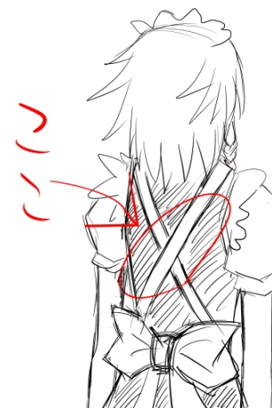 すんげぇ適当な絵だが、このエプロン(?)のひもが交差してるところがモヘェなんですよ。