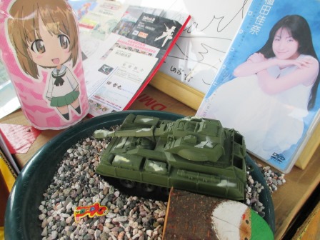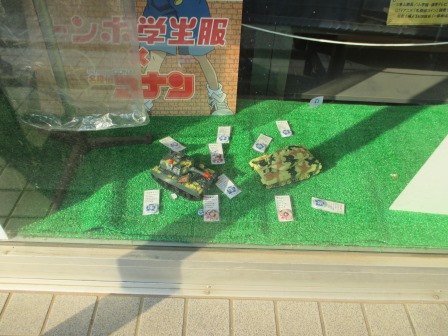 前回は学生服屋さんのウィンドウ内の戦車撮影まで行きました。