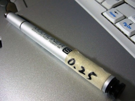 0.1の子だったんですけど、細くてイマイチだったんで、ペン先を変えてます。